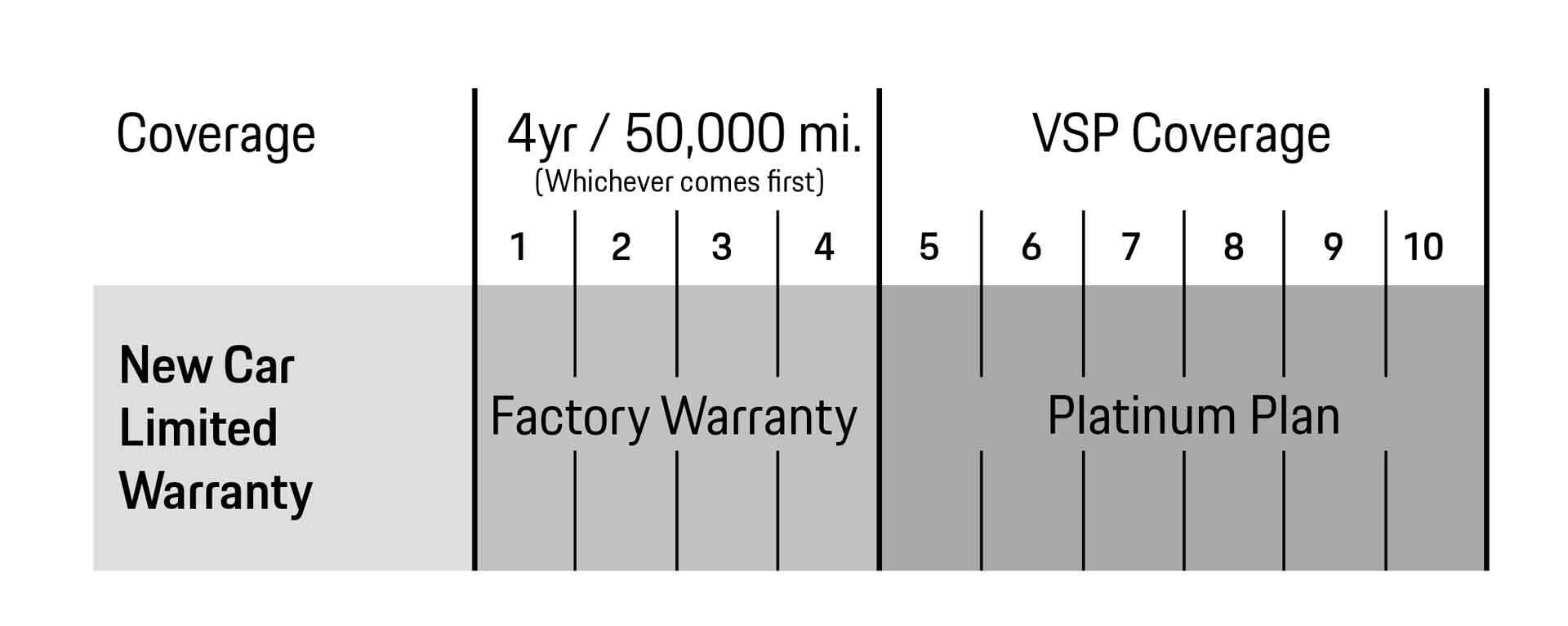 Porsche Electric Vehicle Protection (EVSP) delivers benefits beyond the high standards set by the Porsche factory warranty program, with coverage options up to 10 years or 100,000 miles.1 Pay nothing on covered repairs other than the deductible you select.
